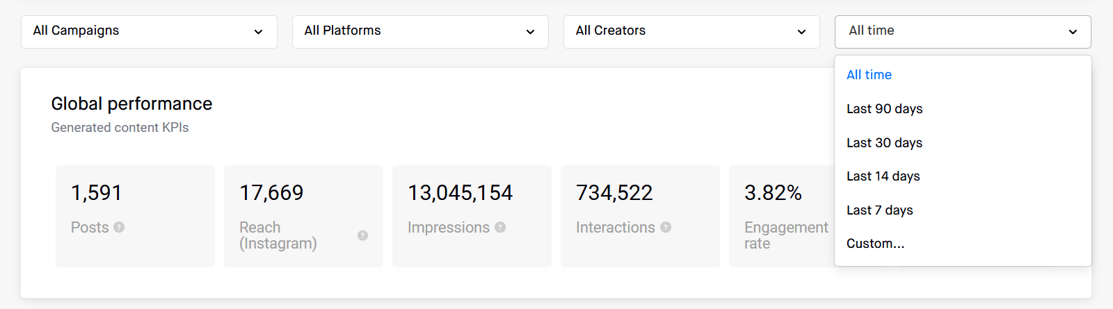 - Content type (platform filter): for example, Instagram vs TikTok