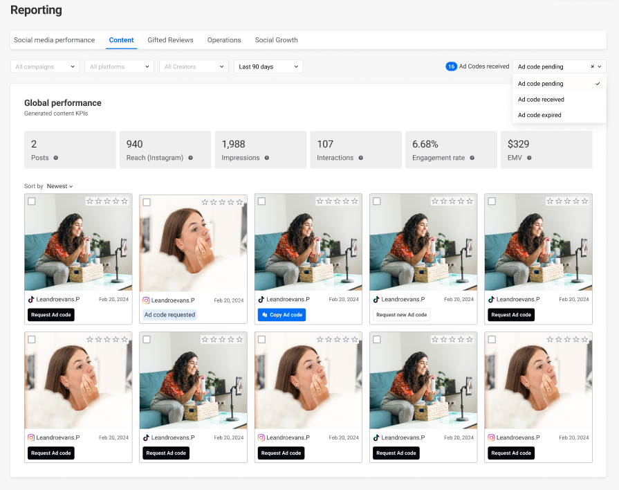 You can also check the Ad Code status directly in the influencer’s content: