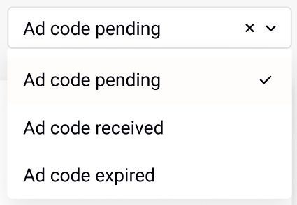 To track received, requested, and expired Ad Codes, you can filter your content by Ad Code status: