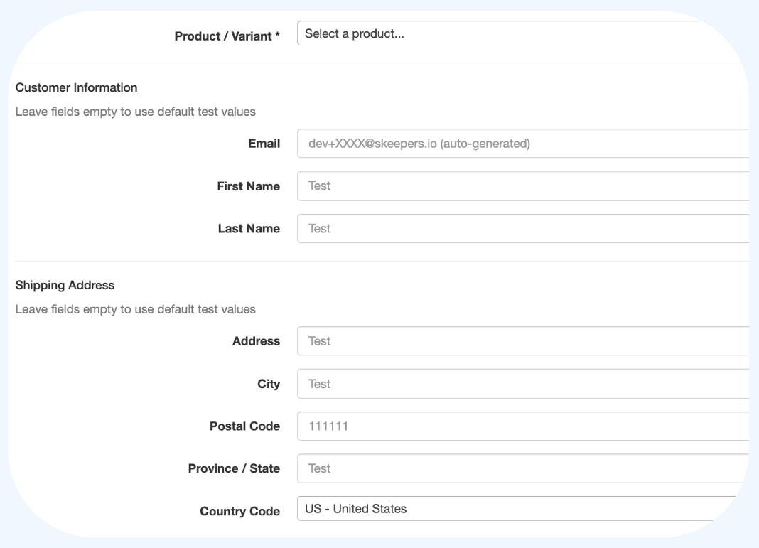 To proceed, please confirm the following details. Otherwise, they will be automatically filled in using our default test language.