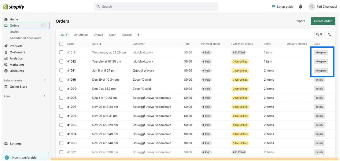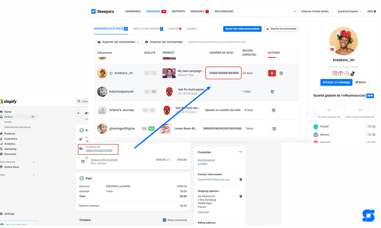 Influencers’ orders are automatically created and integrated into the Shopify order flow. They will be visible thanks to the “Skeepers” tag. All necessary information for shipping parcels is automatically sent: