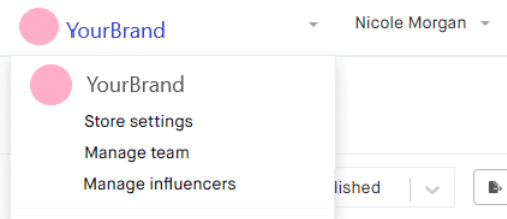 👉 To do so, click on the name of your brand at the top right of the platform, then select Manage team: