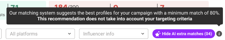 Grâce à l'IA, nous pouvons désormais vous suggérer des profils qui n'étaient initialement pas ciblés, mais qui correspondent à l'image et aux objectifs de votre marque. Elargissant ainsi les opportunités de partenariat.