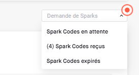 Pour suivre les Spark Codes reçus et en attente, vous pouvez filtrer vos contenus en fonction du statut du Spark Code :