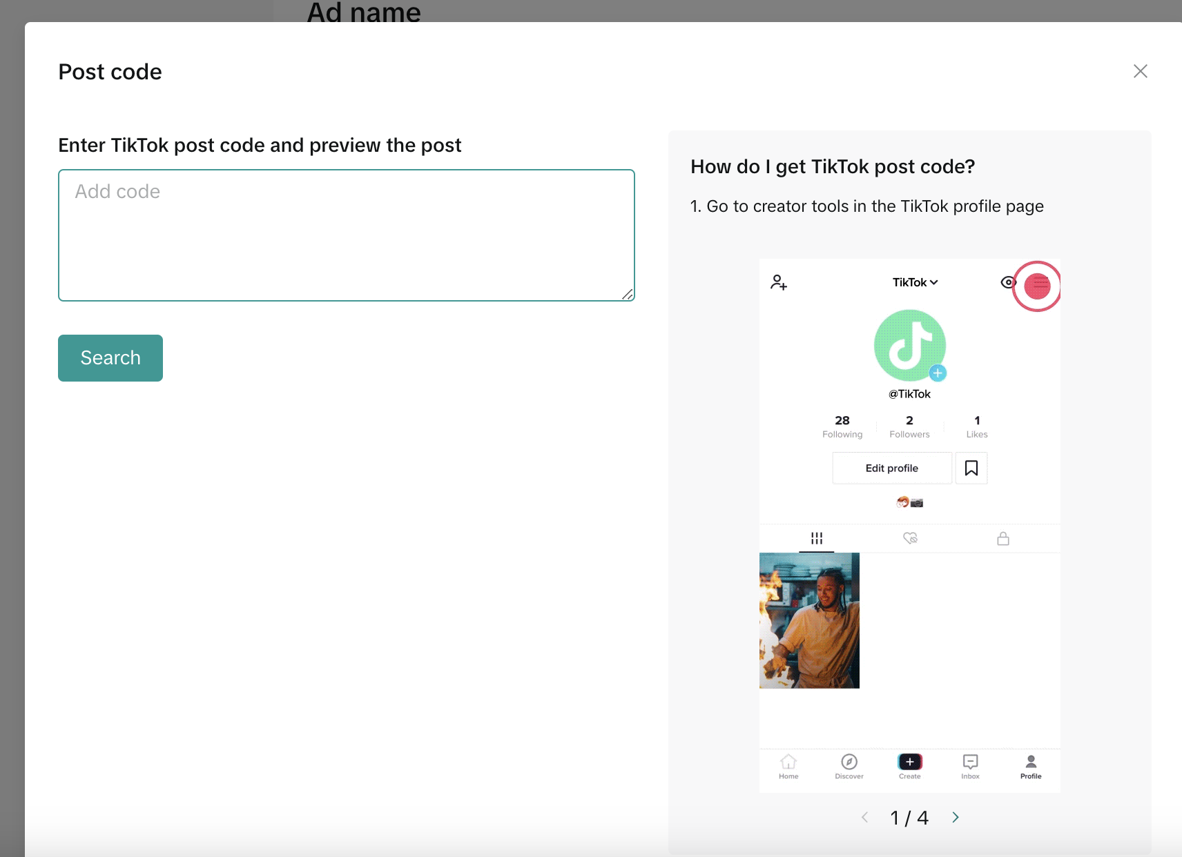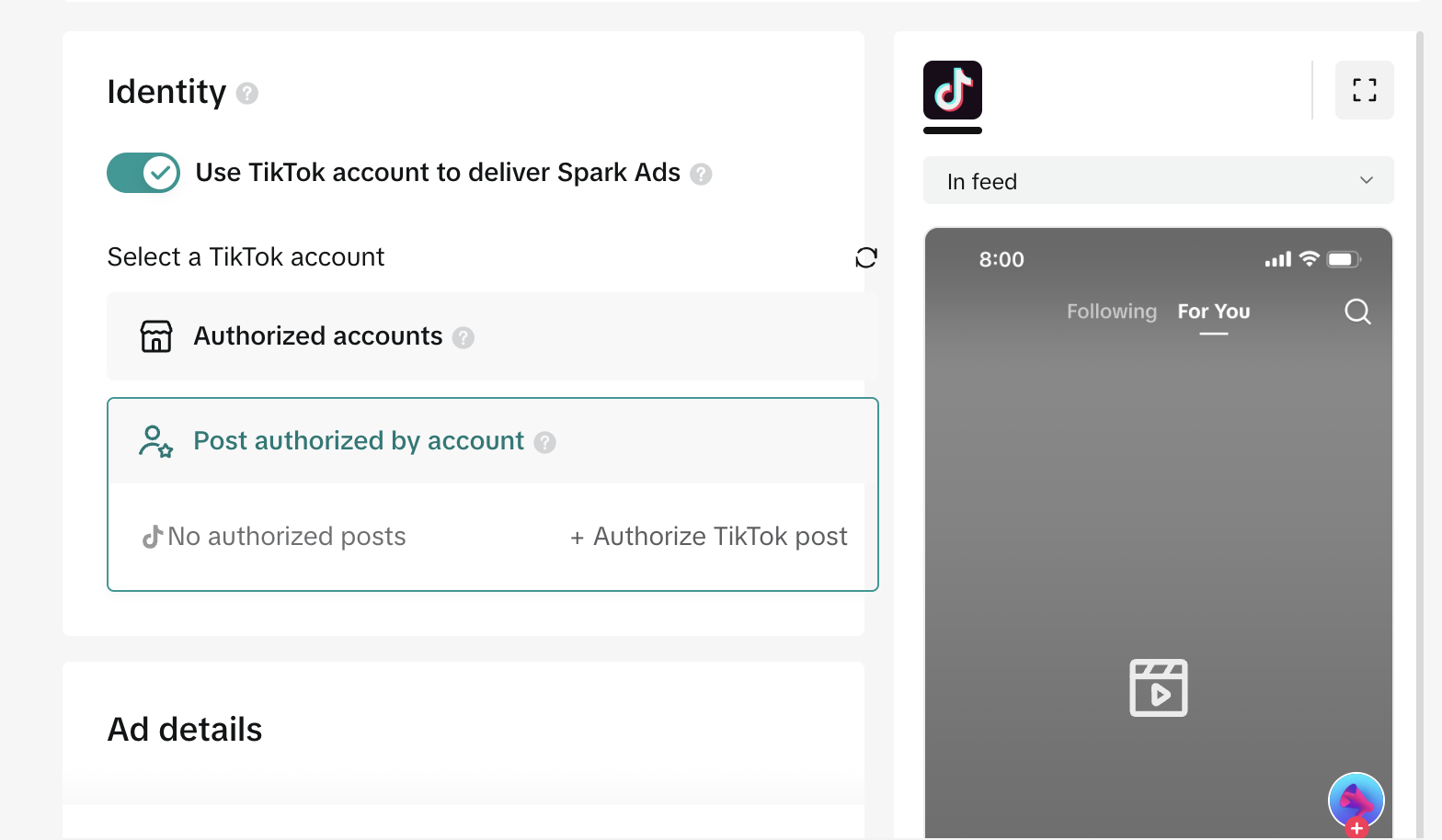 Utilisez ce Spark Code sur votre TikTok Ads Manager et lancez une campagne publicitaire avec le contenu de l'influenceur :