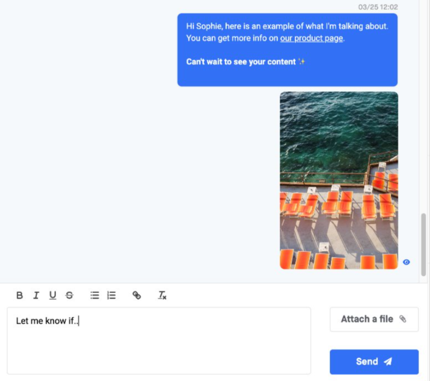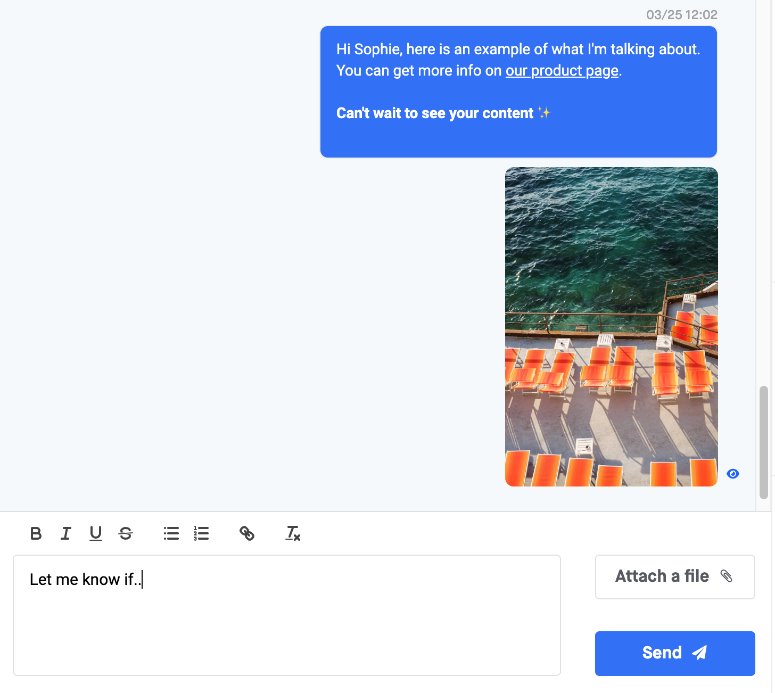 L'esperienza è migliorata per entrambe le parti: i creator possono ricevere immagini, interagire con link e consultare la visibilità dei messaggi per una collaborazione più fluida.