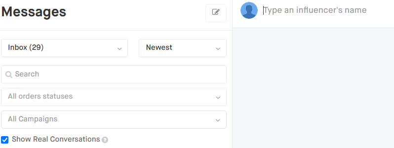Potrai inviare messaggi solo agli influencer che hanno già effettuato almeno un ordine dei tuoi prodotti.
